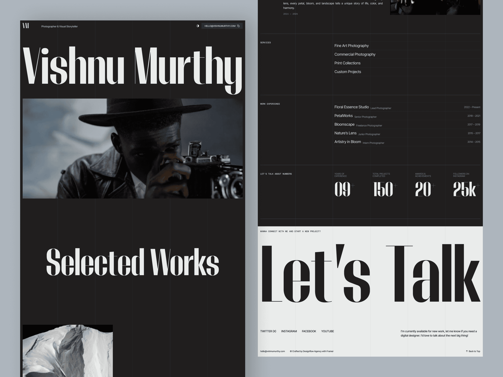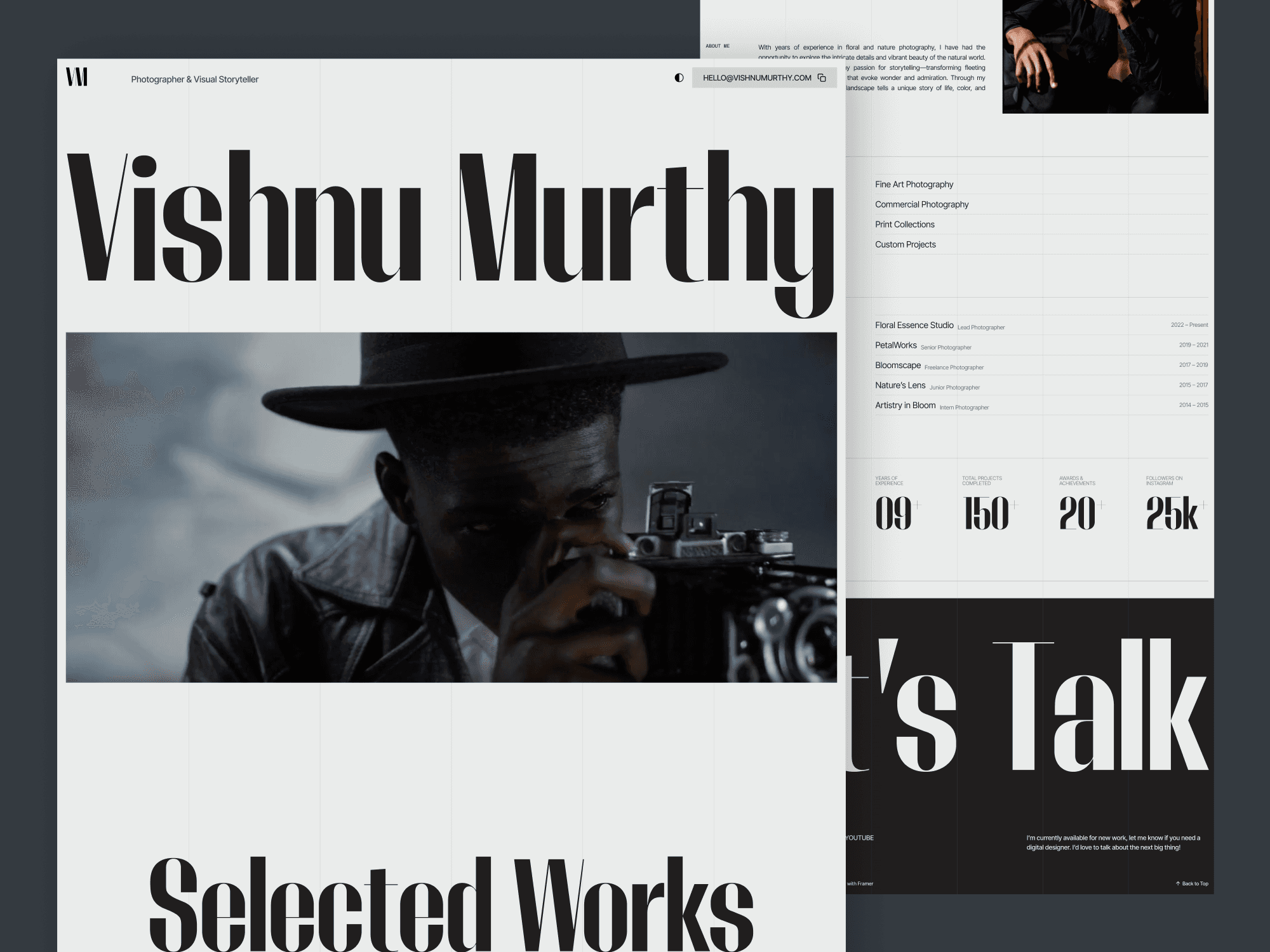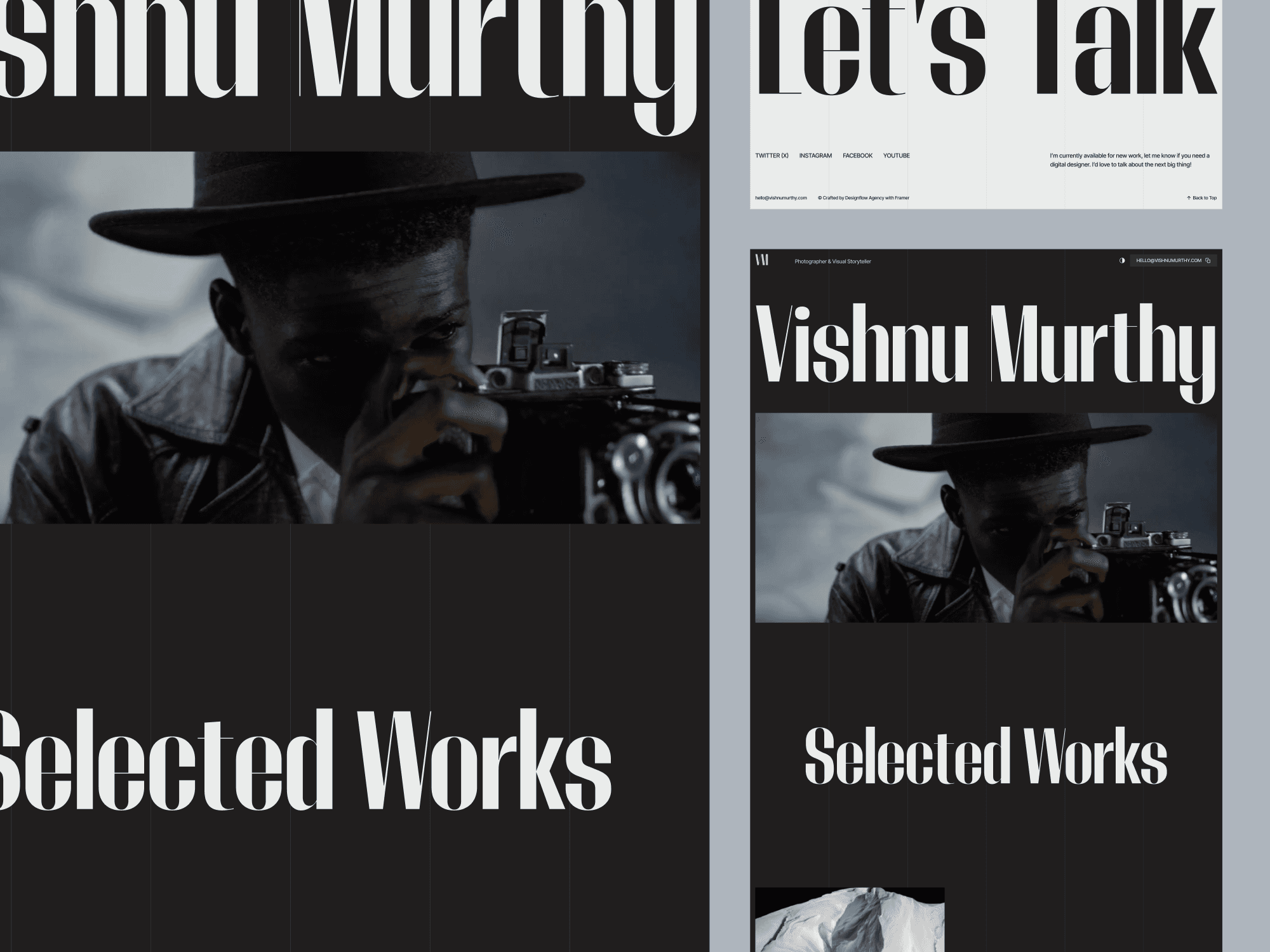 Vishnu is a premium Framer portfolio template crafted for photographers and artists. With versatile layouts, bold typography, and sleek interactions, it’s designed to showcase your work beautifully and engage your audience. Perfect for creating a standout online presence.